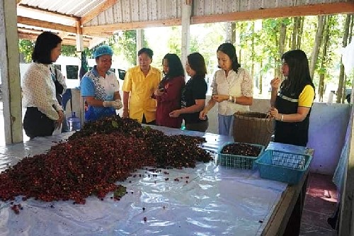 อาจารย์สิริวารี กำลังทำการประเมิน และทวนสอบกับผู้เชี่ยวชาญที่ขึ้นทะเบียนกับอบก.ปัญหาที่บริษัทต้องใช้ต้นแบบ การขึ้นทะเบียนคาร์บอนฟุตพริ้นท์ของกลุ่มผลิตภัณฑ์น้ำดื่ม จากข้อมูลของเว็บ อบก.พบว่าการปล่อยก๊าซเรือนกระจกของผลิตภัณฑ์น้ำดื่มบรรจุขวด PET โดยเฉลี่ยที่ปริมาณ 1 ลิตร มีค่าคาร์บอนฟุตพริ้นท์อยู่ในช่วง 130 – 275 กรัมคาร์บอนไดออกไซด์เทียบเท่า หากพิจารณาตามขนาดบรรจุยอดนิยมได้แก่ ขนาด 600 มล. มีค่าคาร์บอนฟุตพริ้นท์ประมาณ 120 – 125 กรัมคาร์บอนไดออกไซด์เทียบเท่า ขนาด 1,000 มล. 185 – 190 กรัมคาร์บอนไดออกไซด์เทียบเท่า และขนาด 1,500 ,มล. 225 – 230 กรัมคาร์บอนไดออกไซด์เทียบเท่า ในภาพรวมของค่าคาร์บอนฟุตพริ้นท์ประมาณร้อยละ 65 – 70 มาจากช่วงการได้มาของวัตถุดิบ โดยร้อยละ 55-60 มีแหล่งปล่อยก๊าซเรือนกระจกจากขวด PET ซึ่งผลิตภัณฑ์น้ำผลไม้ T&T อยู่ในช่วงการประเมินค่าคาร์บอนฟุตพริ้นท์ค่ะ